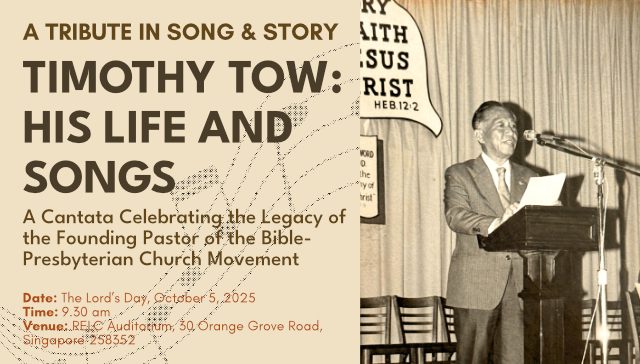 Today, we remember one such servant—our founding pastor, the Rev Dr Timothy Tow. He was my teacher. In Homiletics, he taught me that effective speech has four forms: Statement, Restatement, Illustration, and Testimony. I will end now with testimony—the testimony of his life and ministry, reflected in this cantata presented by the choirs of True Life Bible-Presbyterian Church and Far Eastern Bible College.